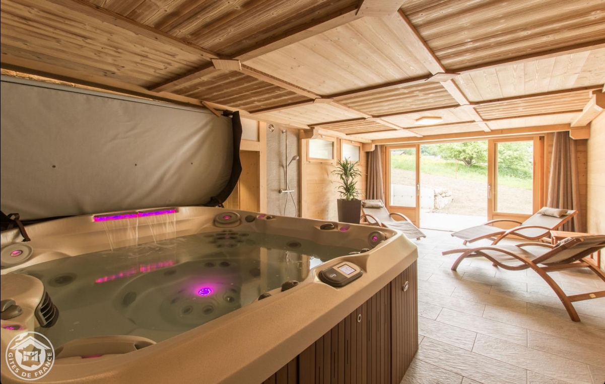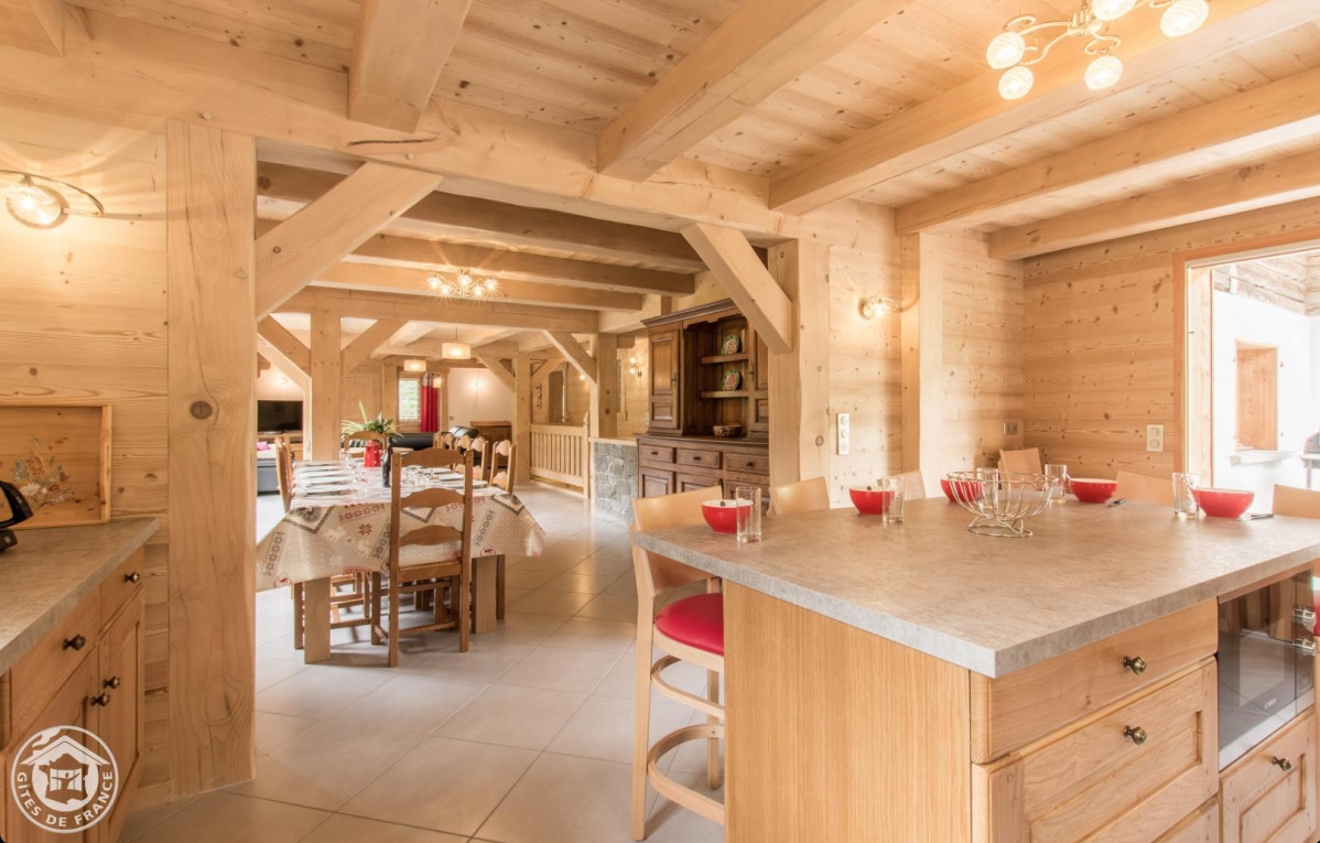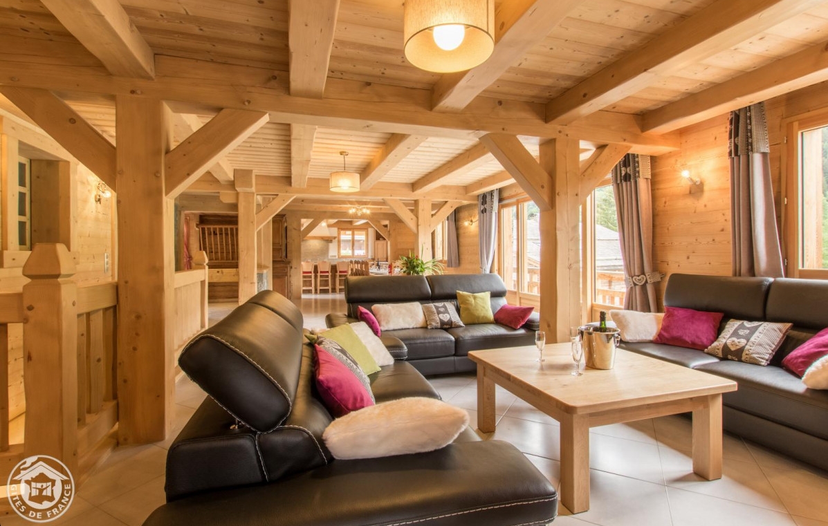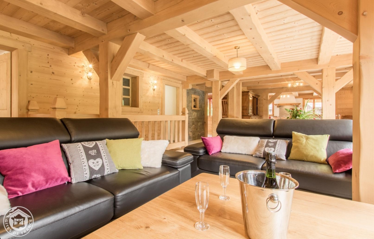 Vaste pièce à vivre, 6 chambres, 5 salles d'eau, salle bien-être avec Jacuzzi et sauna, salle de jeux, terrasse... au total, 230m² aménagés dans une ambiance bois et montagne et offrant vue sur la chaine des Aravis.